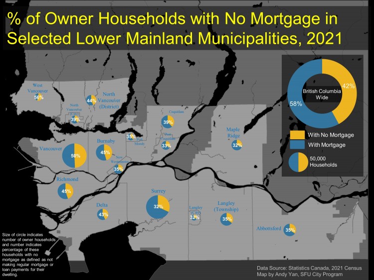 In addition, for communities that are located more eastward in the Lower Mainland, it is clear that there are more homeowners with mortgages, he added. "There are indeed cities with, what one might call, high levels of mortgage-free homes. And then, of course, other areas that have high levels of mortgaged homes. And they're two stories on the same coin. All that we don't know is what will happen in a prolonged, not even high interest, normal interest situation," Yan said.